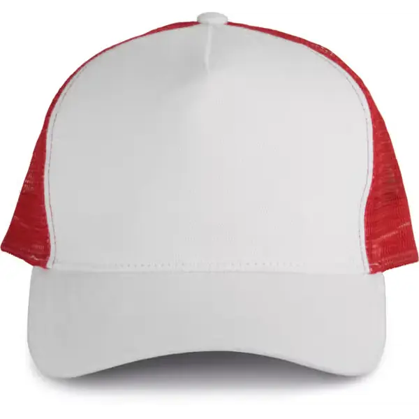 Casquette enfant personnalisable 5 panneaux dos filet Trucker - Blanc/Rouge